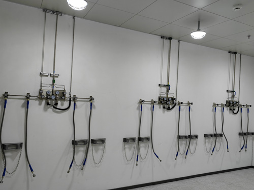 8.氣瓶間內的實驗室氣體瓶與有負壓調接器兩者之間運用SS316L髙壓合金排水管接連方案無滲透性。髙壓排水管為槽式排水管,以保證質量接連方案的利于性。并自導加固鋼纜,防止特別干涉現象下,瓶閥損傷等干涉現象分享的髙壓“抽鞭”事故案例。有負壓調接器與管的接連方案方案為雙環卡套。